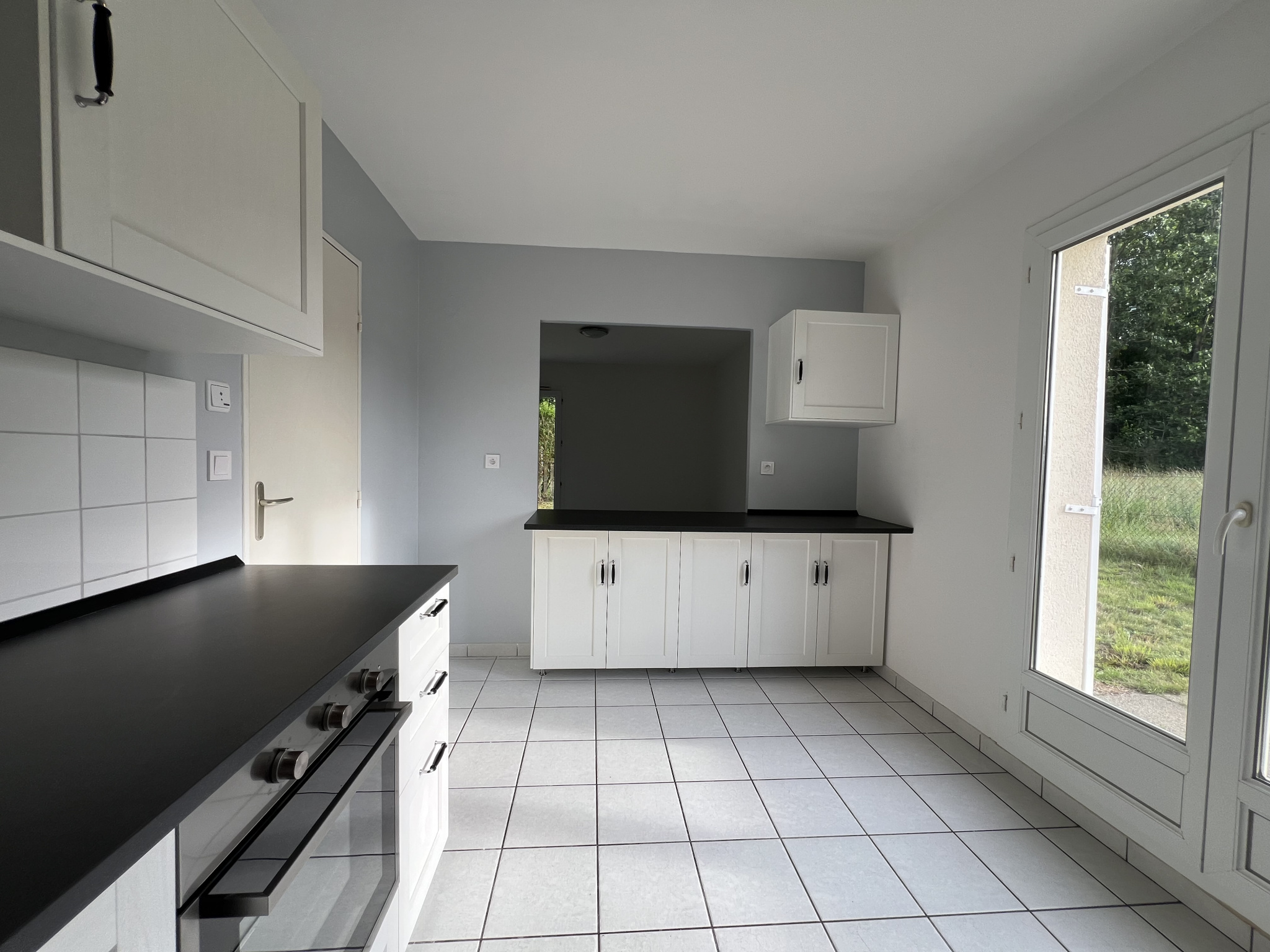 Elle comprend : entrée avec placard, séjour, cuisine aménagée et semi-équipée neuve donnant sur terrasse exterieure, cellier, wc