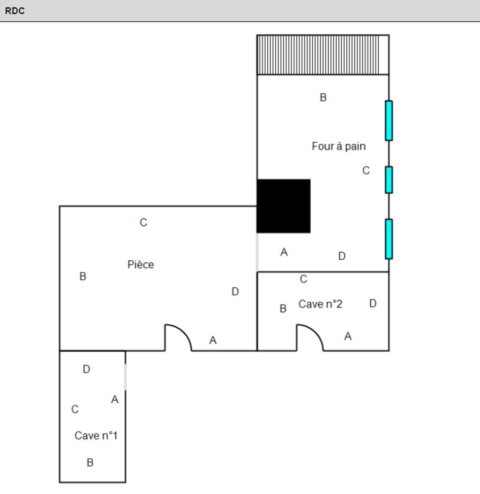 Au rez-de-chaussée de la maison vous retrouverez 2 pièces principales, dont une possède un ancien four à pain et l'escalier permettant d'accéder à l'étage ainsi que 2 petites pièces annexes accessibles uniquement de l'extérieur.