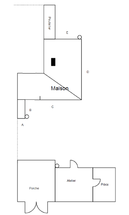 Entrée sur le terrain par un porche permettant de stationner un véhicule à l'abri. Un grenier accessible à l'échelle via le porche. Attenant au porche une annexe composée de deux pièces spacieuses offrant de nombreuses possibilités d'aménagement et un petit batiment en brique.