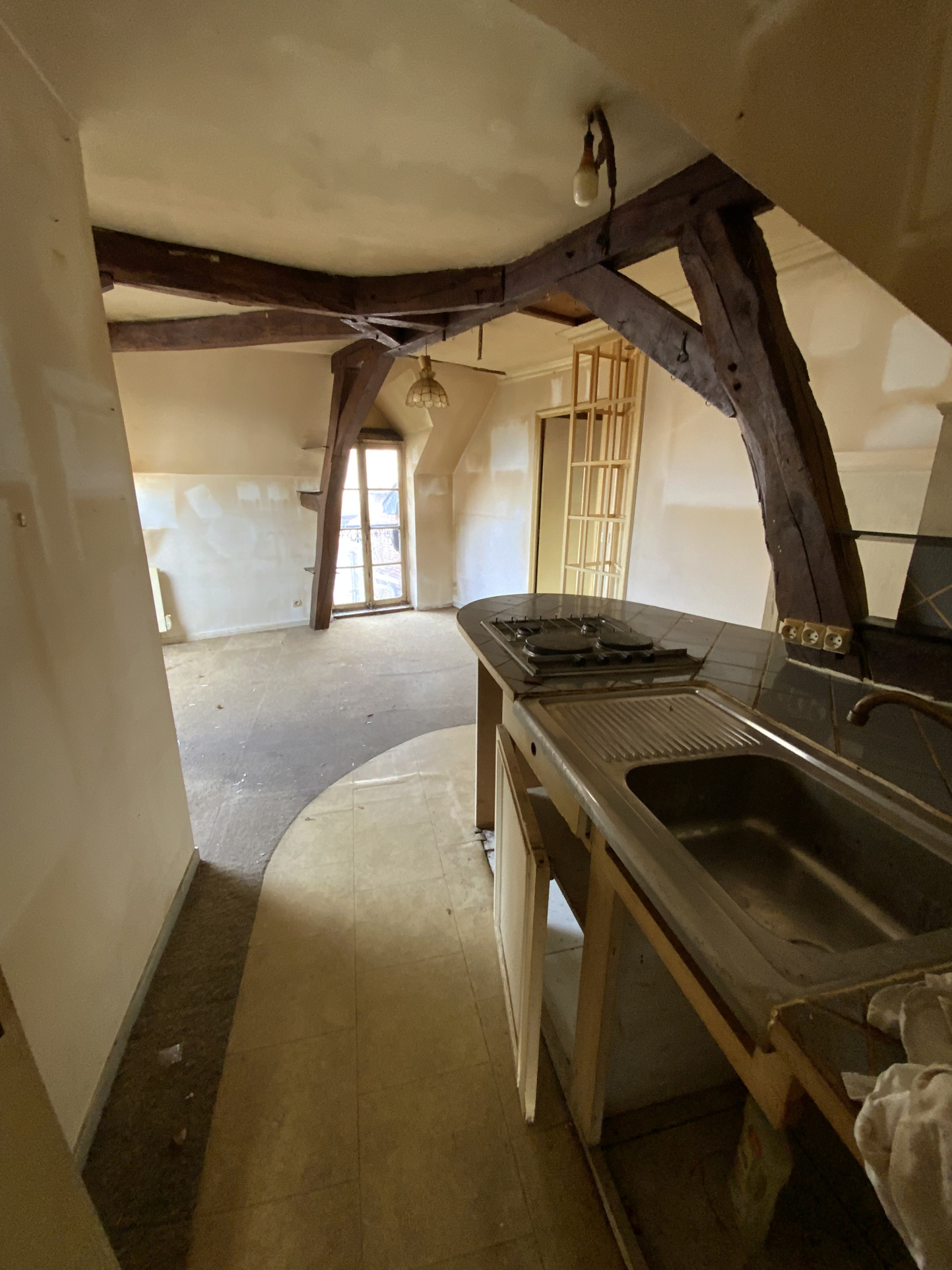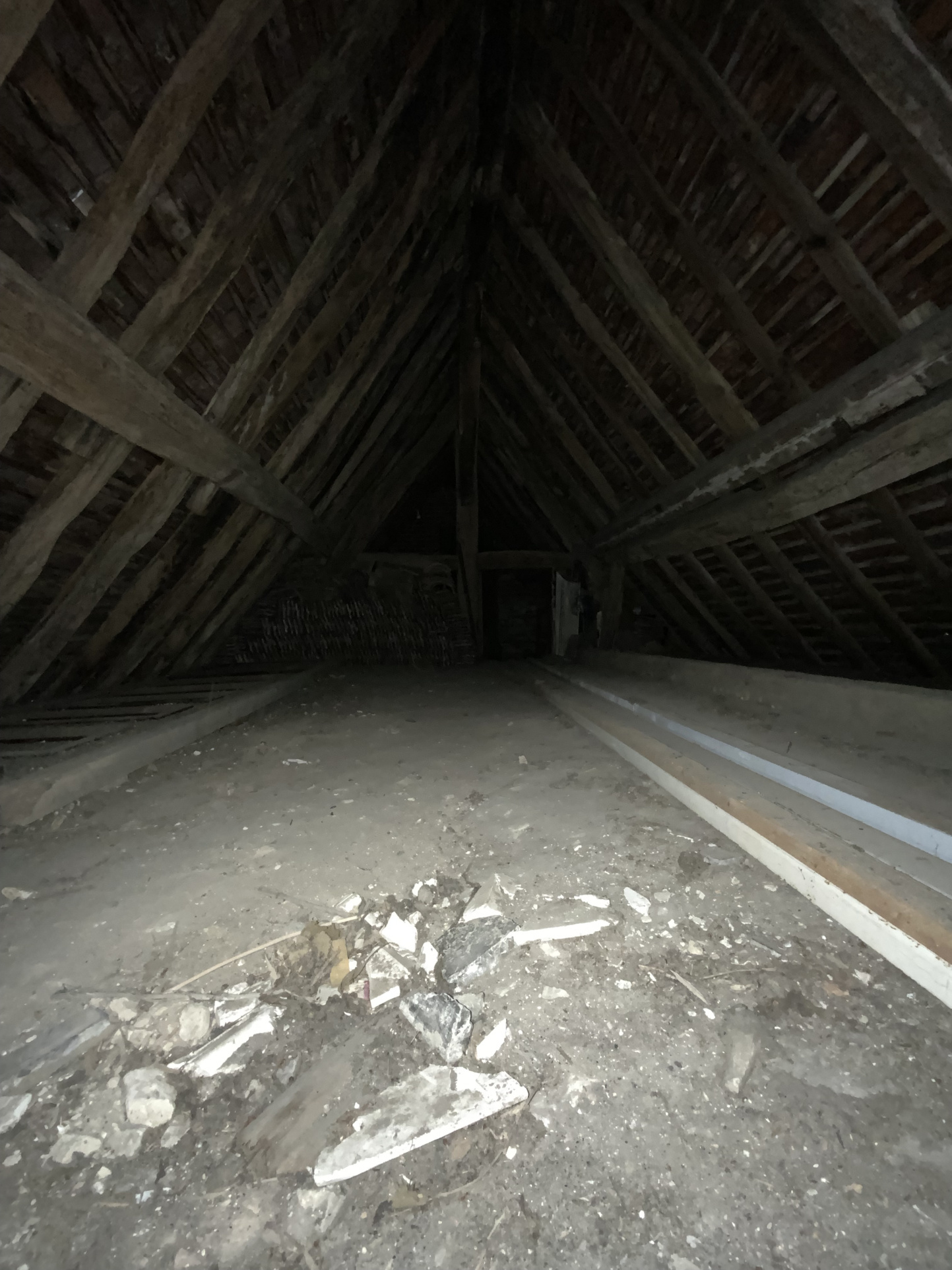 A l'étage de la maison vous disposerez dans la configuration actuelle d'une pièce palière, une pièce de vie, une chambre et d'une salle de bain avec WC.