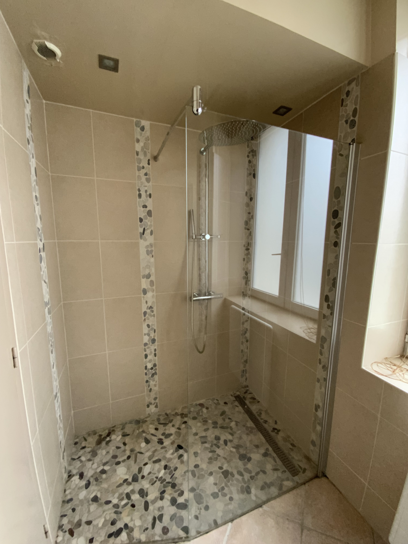 Ce logement comprend : une entrée avec placard, un WC séparé, une salle d'eau avec table de gommage, une chambre/pièce avec point d'eau, une salle d'eau avec douche et hammam, 2 pièces dont une avec meuble vasque, une pièce/salle avec accès sur l'extérieur.